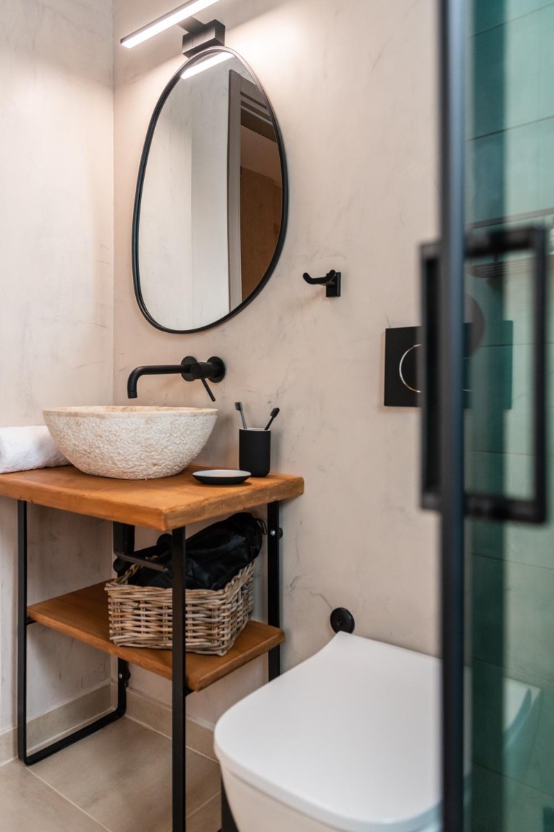 Με την επιλογή ζεστών χρωμάτων, natural υλικών και statement διακοσμητικών, το κατάστημα Έπιπλο Κασάπης και το Maison κατάφεραν να αναδείξουν την προσωπικότητα του ξενώνα, διατηρώντας τον παραδοσιακό χαρακτήρα του αλλά προσθέτοντας μια σύγχρονη, refined αύρα.